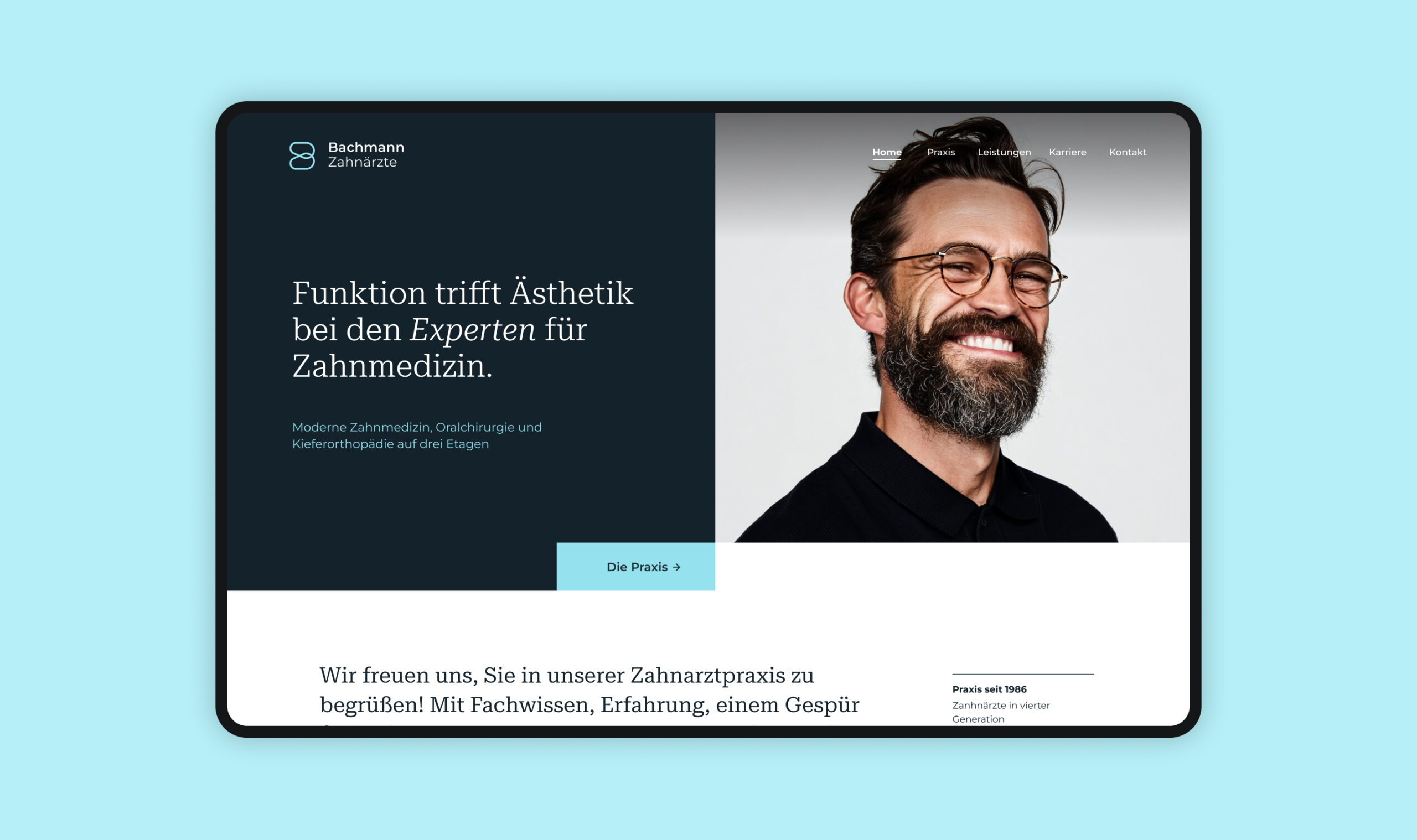 Für die Praxis Bachmann Zahnärzte entwickelten und realisierten wir eine modernes Corporate Design und eine übersichtliche Website, die die Kompetenz der Praxis sowie das umfassende Behandlungsspektrum klar vermittelt. Ein strukturierter Seitenaufbau, eine ruhige Gestaltung und eine intuitive Nutzerführung sorgen für eine angenehme Orientierung für Patientinnen und Patienten.