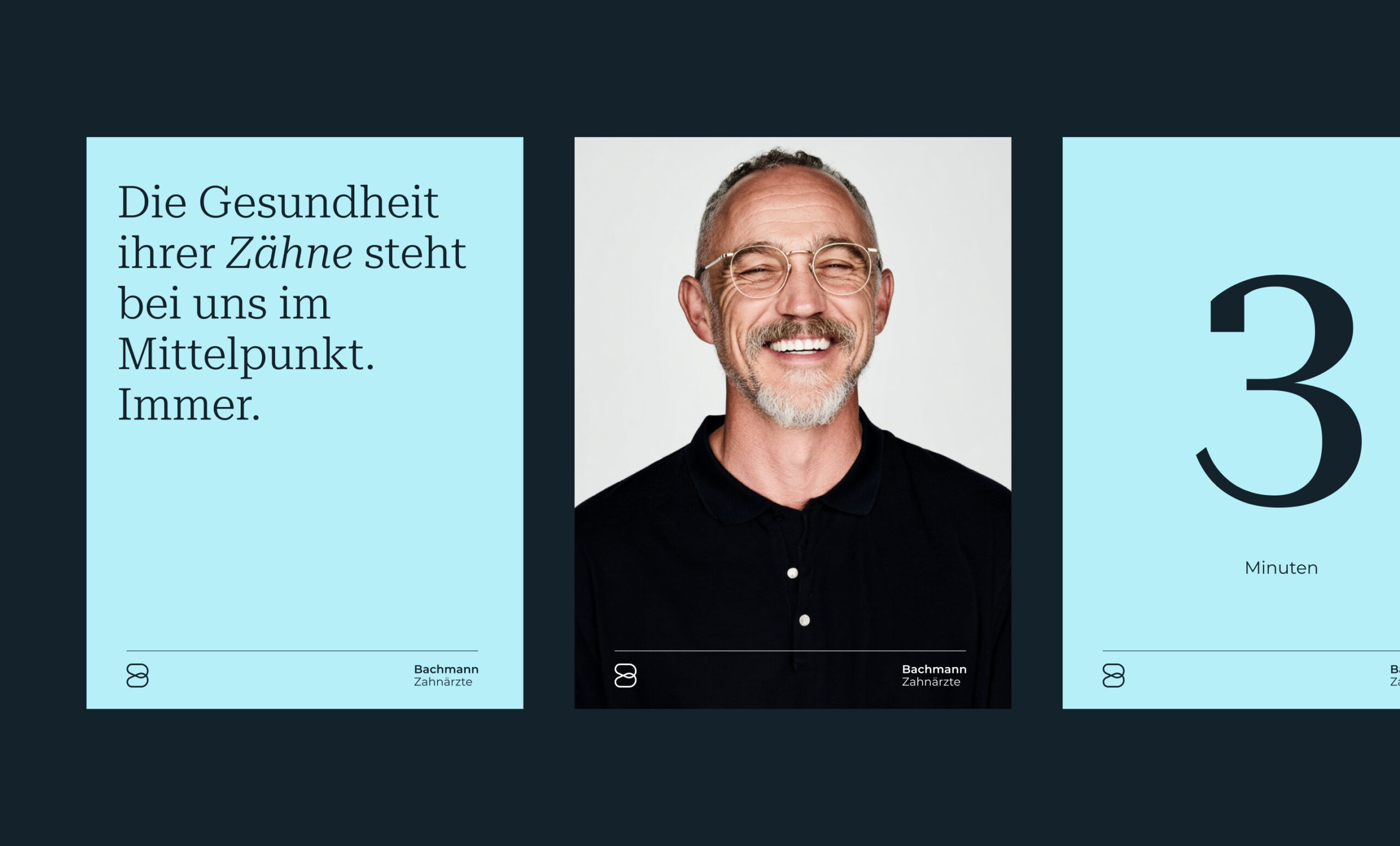 Markenentwicklung und Umsetzung einer modernen Praxiswebsite für Bachmann Zahnärzte – übersichtlich gestaltet und auf WordPress realisiert.